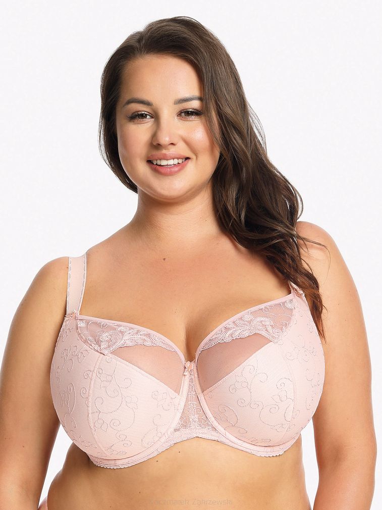 Leta är en supersnygg halvvadderad bh i blekrosa. Mönstret i spetsen är silver. Bra lyft.