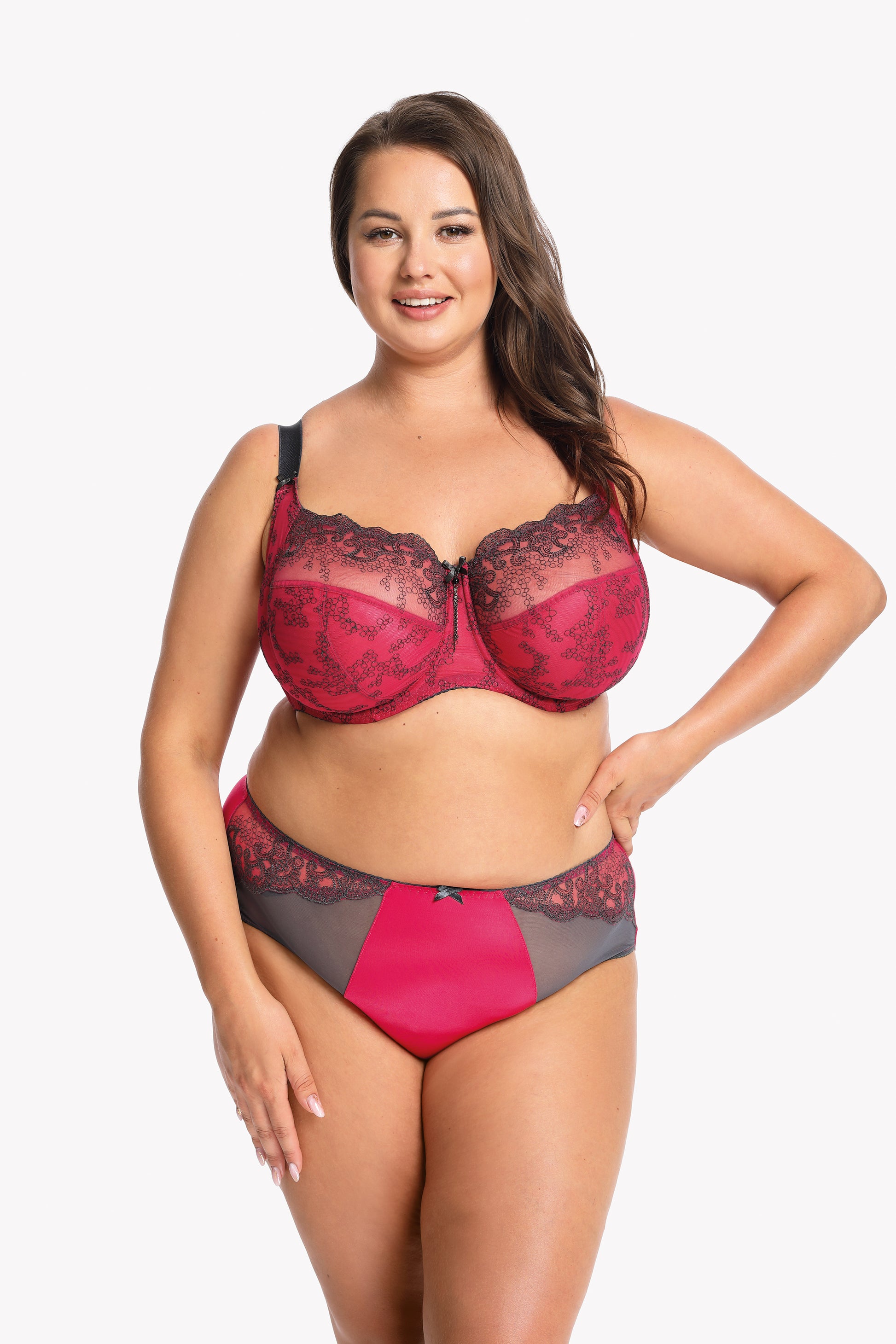 Rose Maxi är en ovadderad bh i skir oelastisk spets. Färgen är mörk rödrosa. Bra lyft.